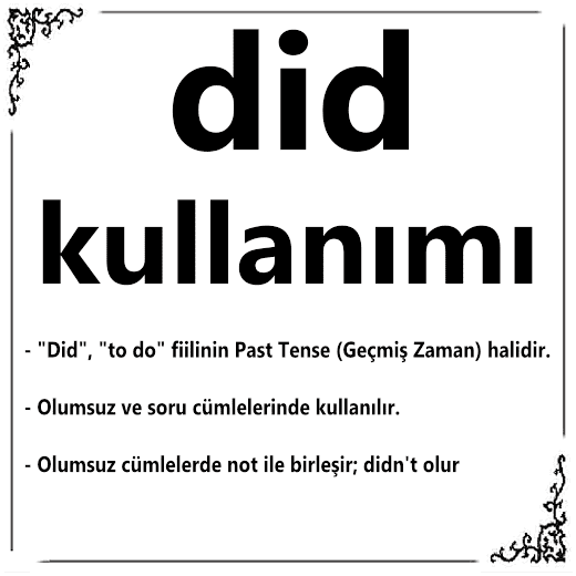 simple past tense gecmis zaman olumsuz cumle ornekleri